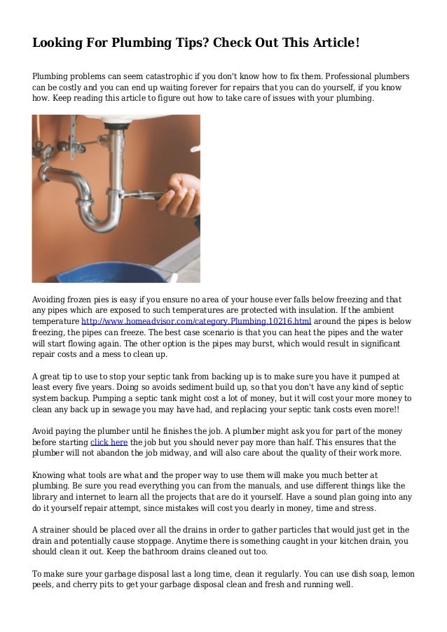 To Fix Plumbing Problems Yourself - Find The Plumbing Assistance You Seek Right Here By Audramitchell324 Issuu - So prepare yourself ahead of time.. Strategies that will help you turn meals into art! Looking for plumbers servicing 24/7 or need a quick hot water solution? It can be daunting to attempt to fix it yourself as you probably think that you will only make it worse but with the right know how and guidance you can fix your plumbing problems in a matter of minutes and save yourself from having to splash out on plumber fees. Before you attempt a plumbing repair, turn off the main water supply. Common plumbing problems weigh on every homeowner's mind.